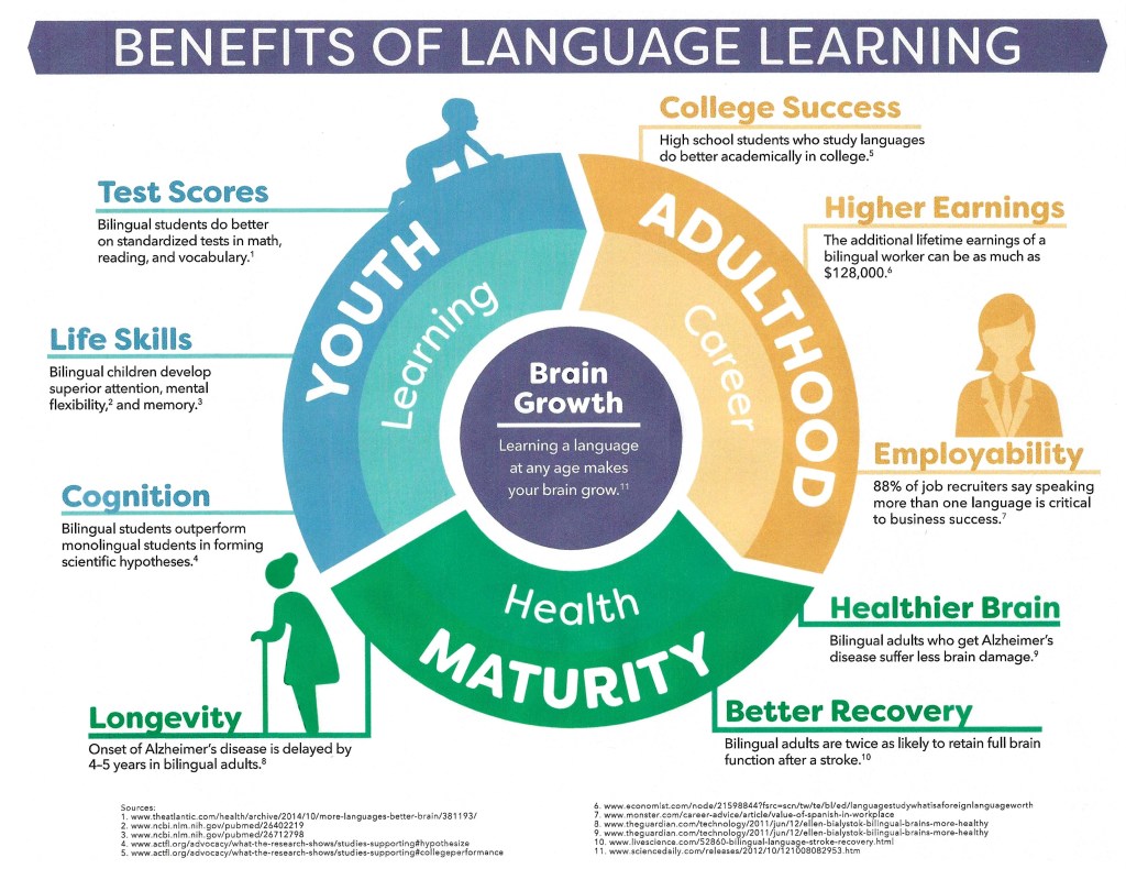 Language learning is not limited to greater business opportunities. It can impact your personal life as well. Friends from distinct cultures and with various cultural/language backgrounds may be your ticket to “thinking outside the box”, whether for business or for leisure. These new friends may introduce you to groups or individuals you may not have had access to before – new tastes and smells related to their countries of origin, new sounds, new ideas, new concepts. These new friends may even bring you and your partner closer together for an exciting life of discoveries and memories.
